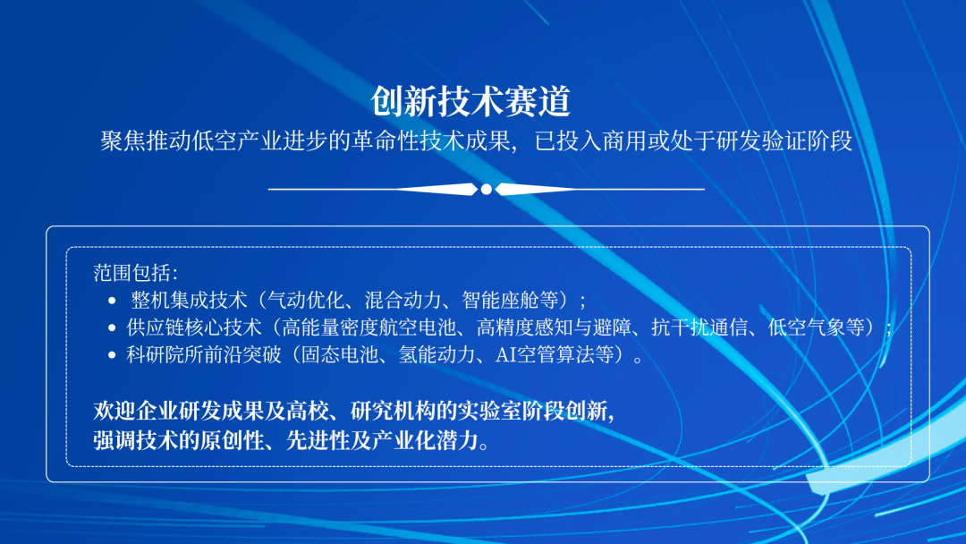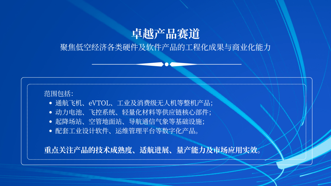 (1)卓越产品:聚焦低空经济各类硬件及软件产品的工程化成果与商业化能力。